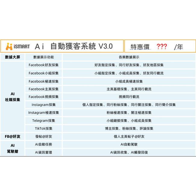 標籤: Ai自動獲客系統 V3社群矩陣 全行銷通路一鍵完成!年費優惠方案!歡迎諮詢!, Ai自動獲客導流系統, 系統功能表